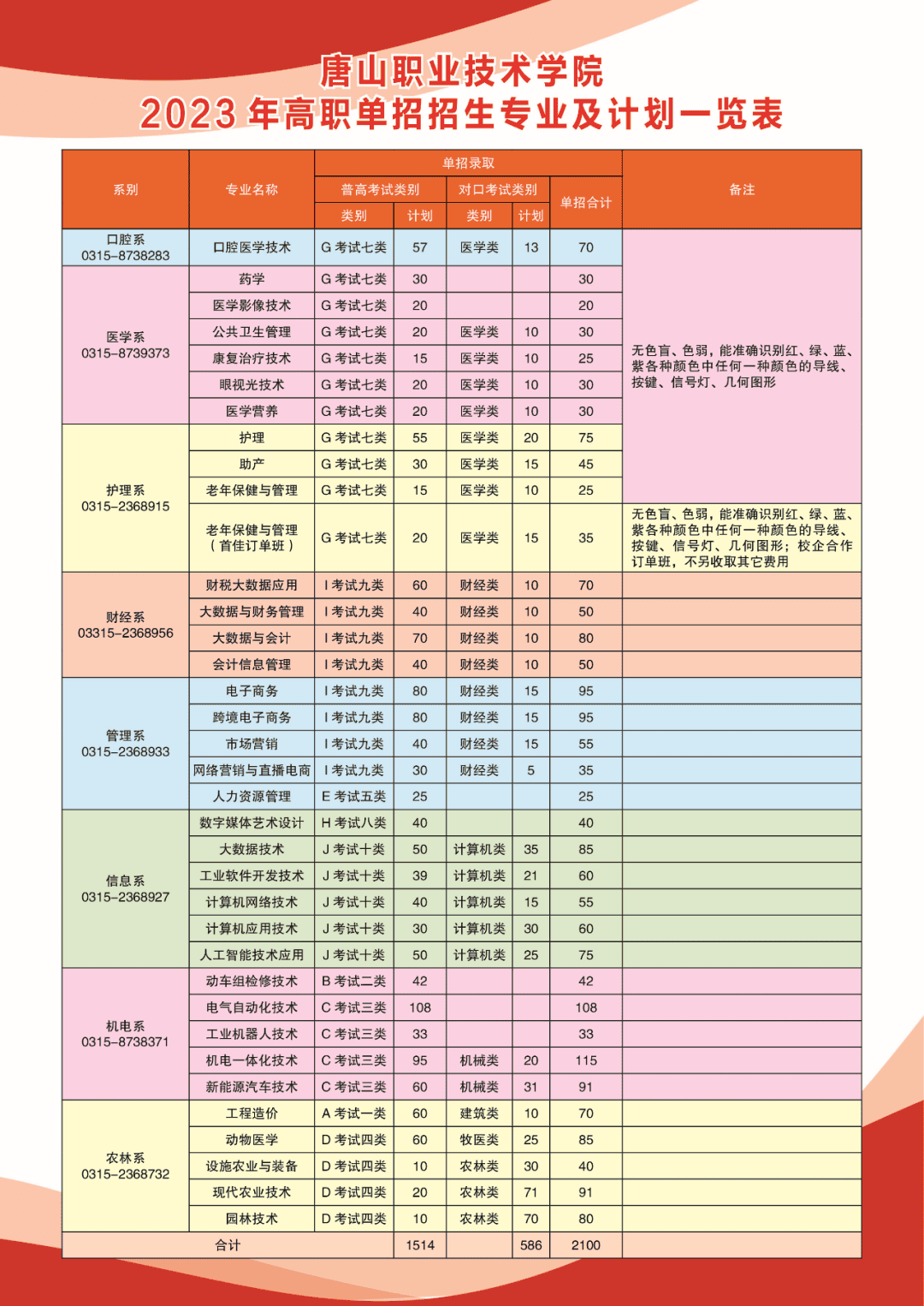 唐山职业技术学院2023年高职单招简章